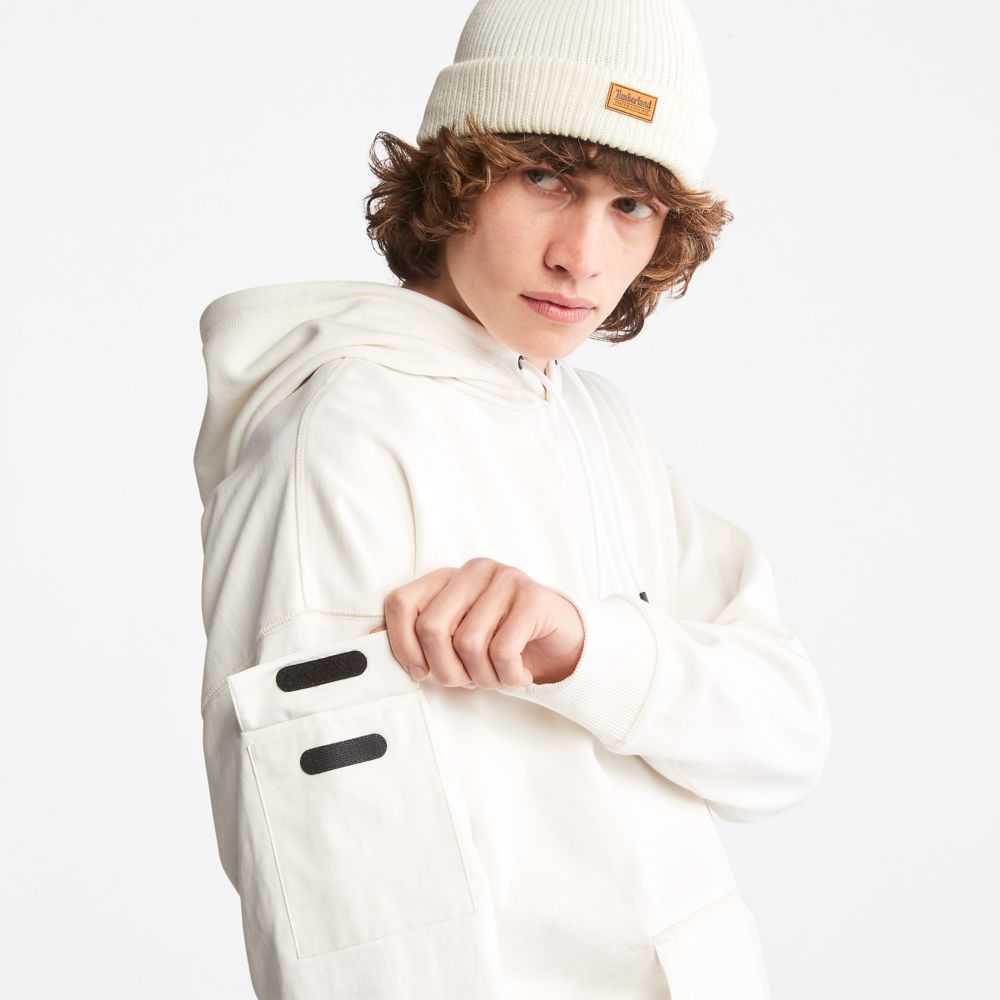 Worksite-inspired design at the edge of utility.Designed with a relaxed fit for comfort,this men's knit hoodie is accented with a woven kangaroo pocket and a woven cargo pocket with pocket flap on the sleeve.And because we're committed to responsible sourcing,it's made with 80% organically grown cotton.