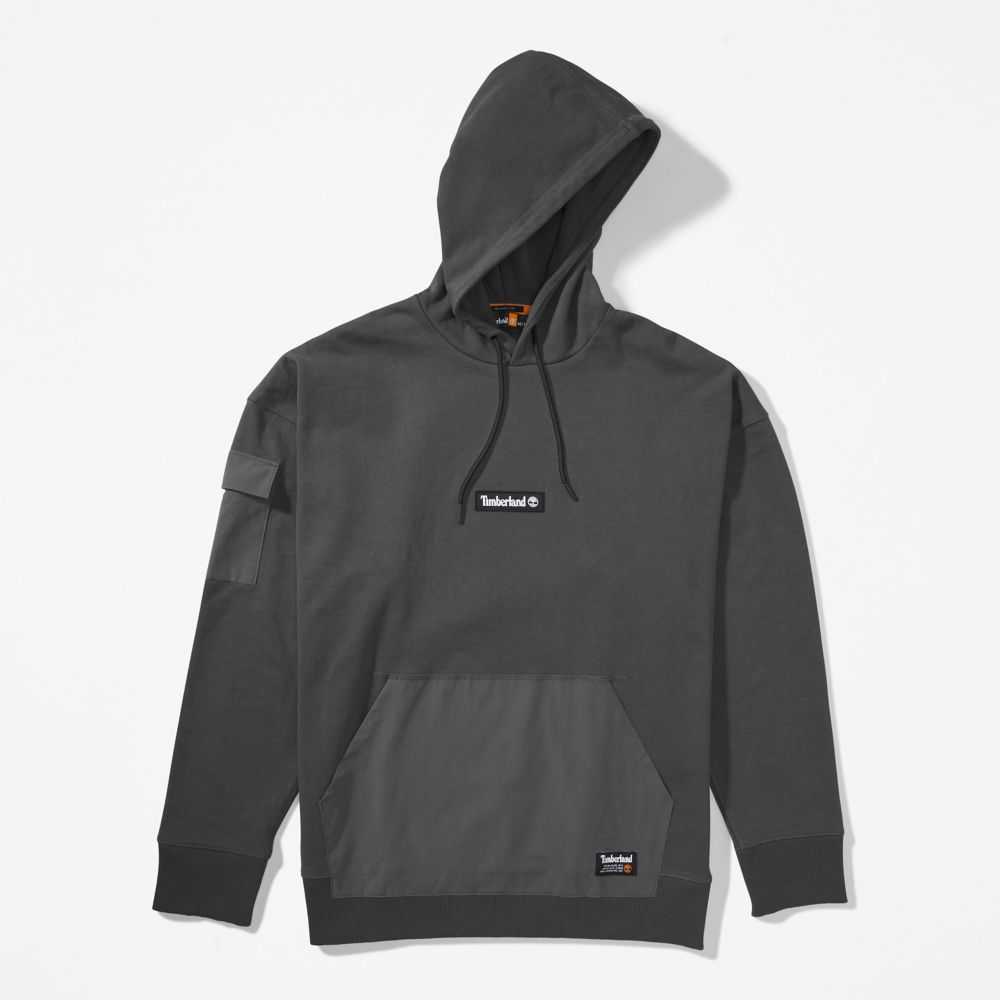 Worksite-inspired design at the edge of utility.Designed with a relaxed fit for comfort,this men's knit hoodie is accented with a woven kangaroo pocket and a woven cargo pocket with pocket flap on the sleeve.And because we're committed to responsible sourcing,it's made with 80% organically grown cotton.