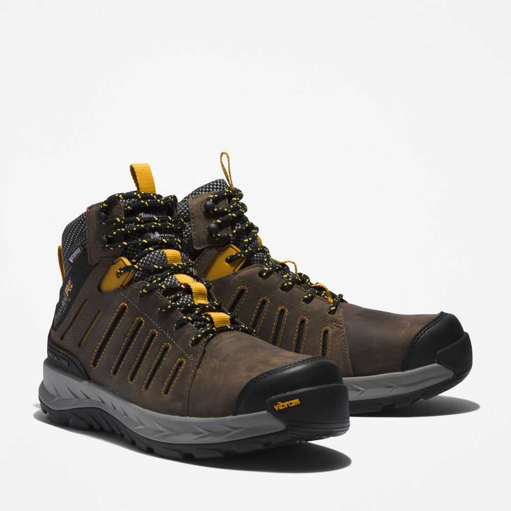 Feel confident on the job with these waterproof leather work boots.A Stable Stride™ technology stability platform helps you feel secure on your feet,while the lightweight HoverSpring™ foam midsole,anti-fatigue footbed,and Vibram outsole provide enhanced comfort,durability,and traction.Other performance features include electrical hazard protection,structural support,and a breathable and moisture-wicking lining with antimicrobial treatment for odor control.