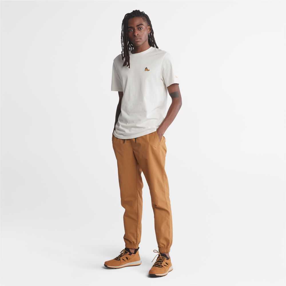 These lightweight,water-resistant joggers are great in all weather and are designed for comfort with darted knees and an elastic waistband and cuffs.